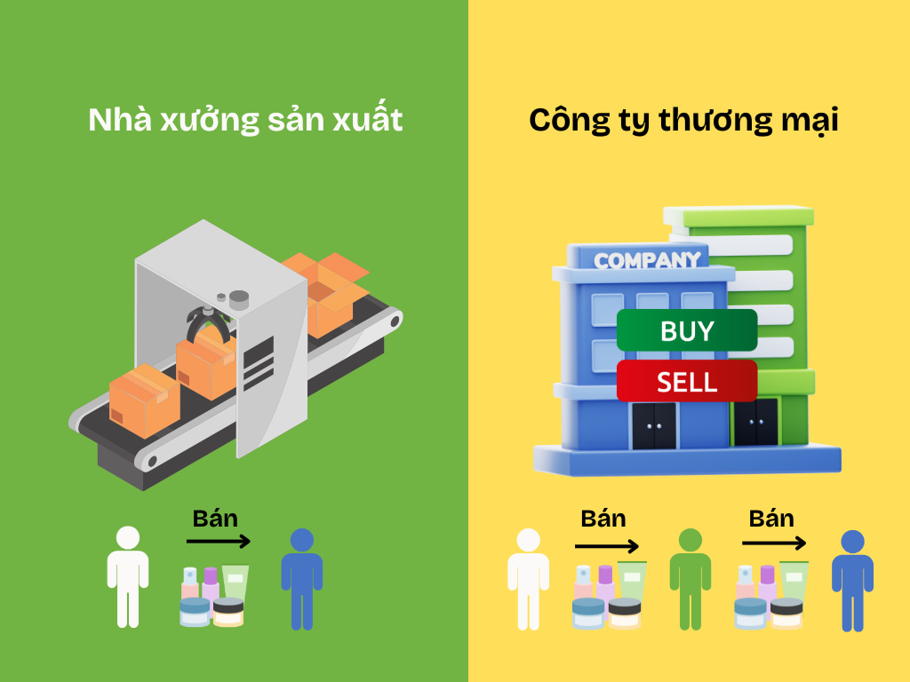 Công ty thương mại (Trading Company): Họ mua hàng từ nhiều nhà xưởng khác nhau và bán lại.