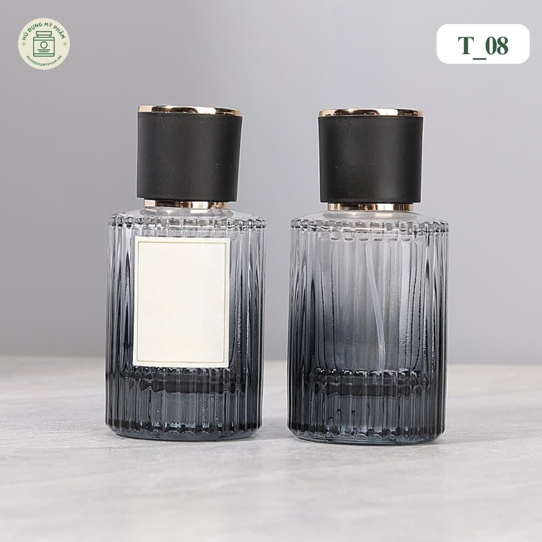 Việc chọn bao bì đóng vai trò quan trọng trong việc bảo quản và nhận diện sản phẩm. Mẫu chai chiết nước hoa mã T_08 với thiết kế thủy tinh đen vân sọc là lựa chọn thực tế, phù hợp cho nhiều dòng mỹ phẩm dạng lỏng như nước hoa, tinh dầu hay tinh chất dưỡng da.