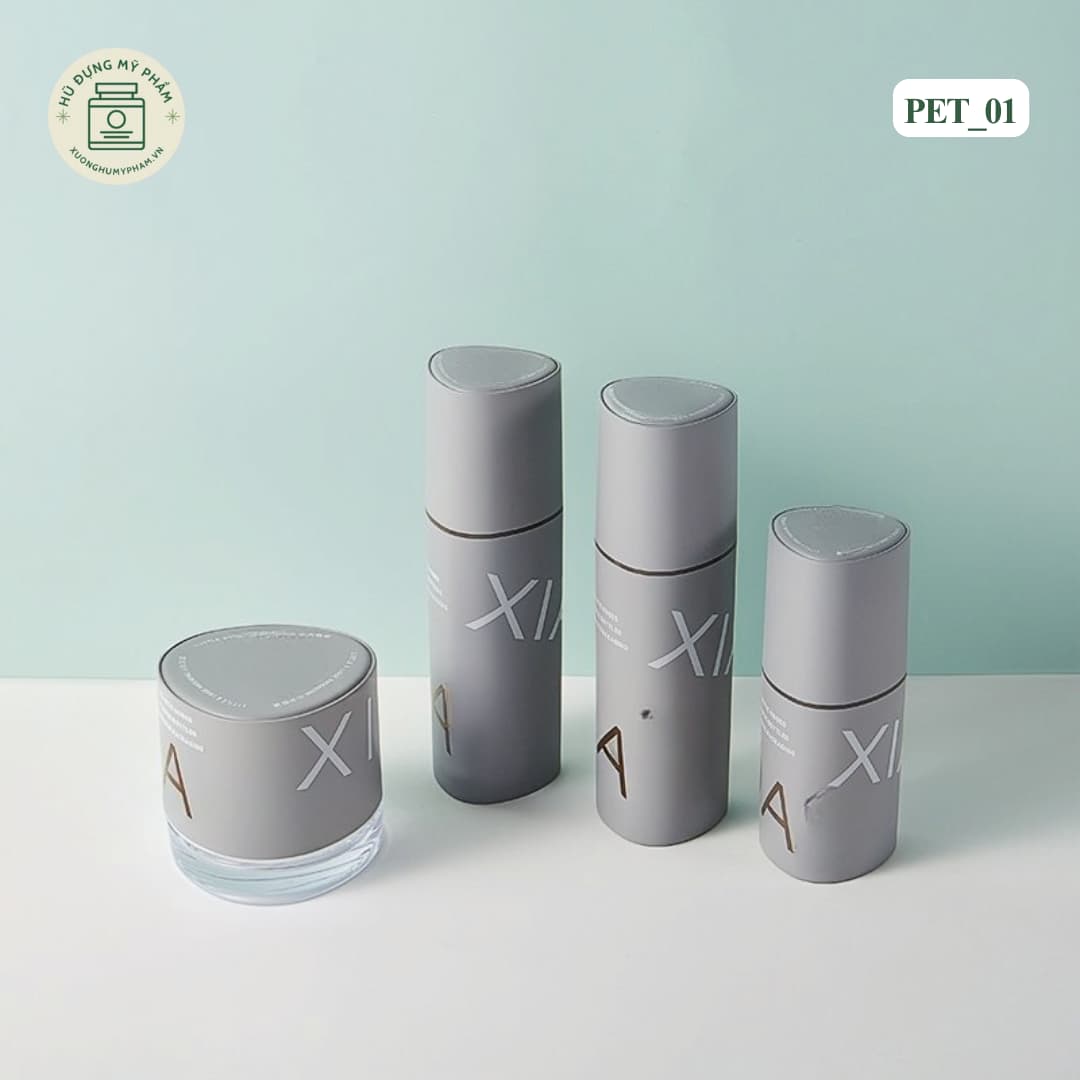 Bộ chai lọ mỹ phẩm nhựa PET xám mờ mã PET_01 (50g – 100ml)