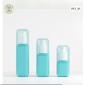 Điểm nhấn của mã PET_03 chính là bộ nắp đậy. Nắp chụp bên ngoài làm từ nhựa trong suốt chất lượng cao. Màu sắc nắp được xử lý đồng bộ với màu thân chai. Thiết kế này giúp bảo vệ đầu nhấn khỏi bụi bẩn và vi khuẩn. Nó mang lại vẻ ngoài chỉn chu và chuyên nghiệp cho bộ sản phẩm.