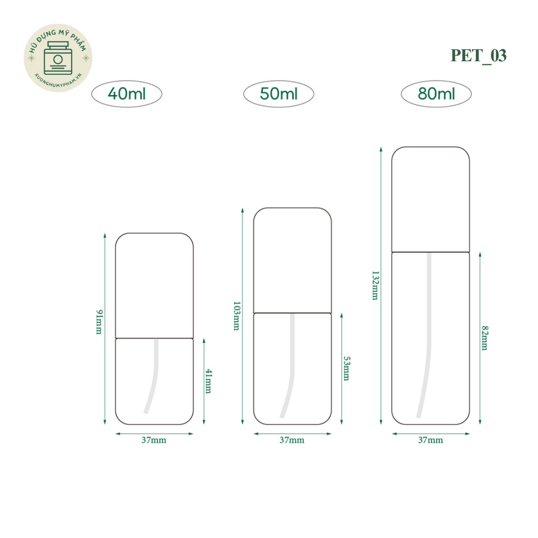 Dung tích 80ml: Kích thước lớn hơn với chiều cao 132mm. Loại này lý tưởng cho sữa dưỡng (lotion) hoặc tinh chất dưỡng thể.