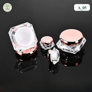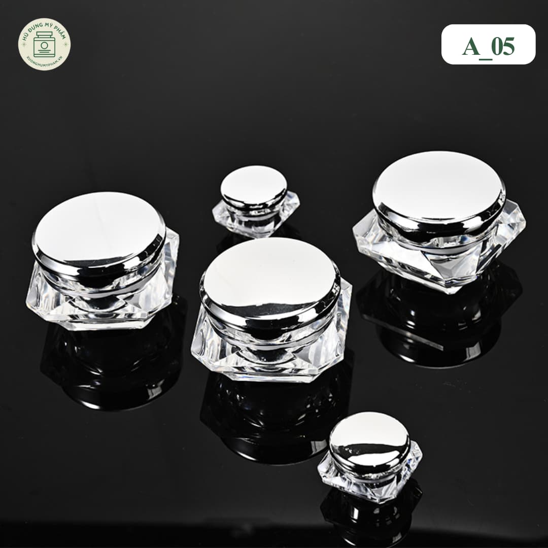 Đối với các dòng sản phẩm như kem dưỡng mắt, son dưỡng môi, kem trị mụn hoặc các bộ kit dùng thử (tester), việc chọn một chiếc hũ nhỏ nhưng vẫn phải “sang” là rất quan trọng. Mẫu hũ đựng mỹ phẩm Acrylic mã A_05 với thiết kế dáng kim cương và nắp màu hồng kim là giải pháp bao bì hoàn hảo để nâng tầm giá trị cho các sản phẩm dung tích nhỏ.