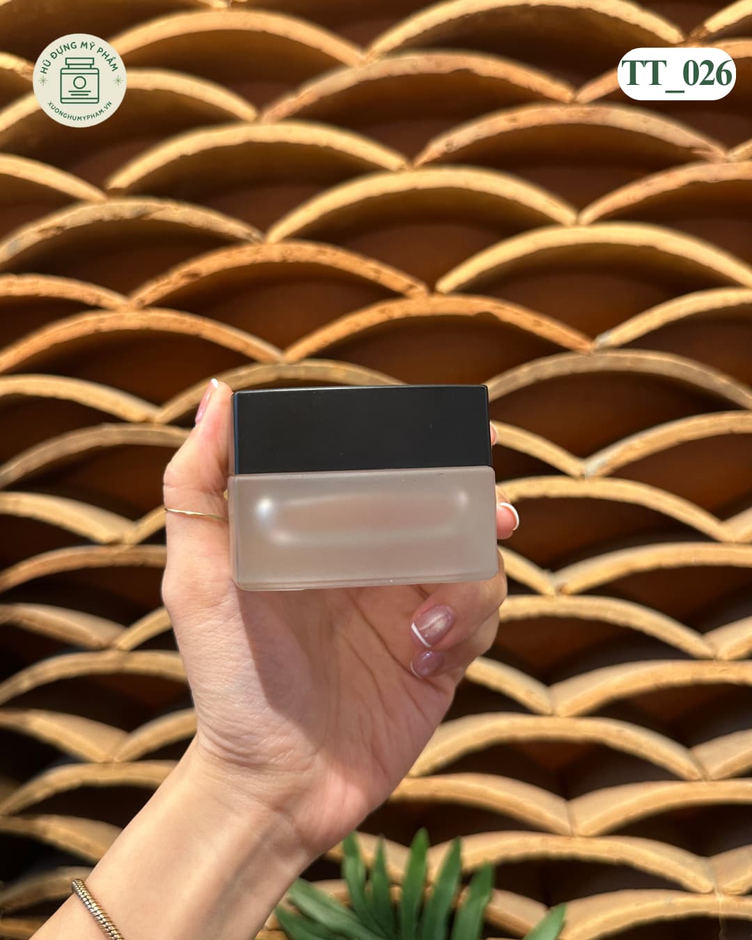 Hũ đựng mỹ phẩm thủy tinh vuông tráng mờ nắp đen mã TT_026 (10g – 50g)