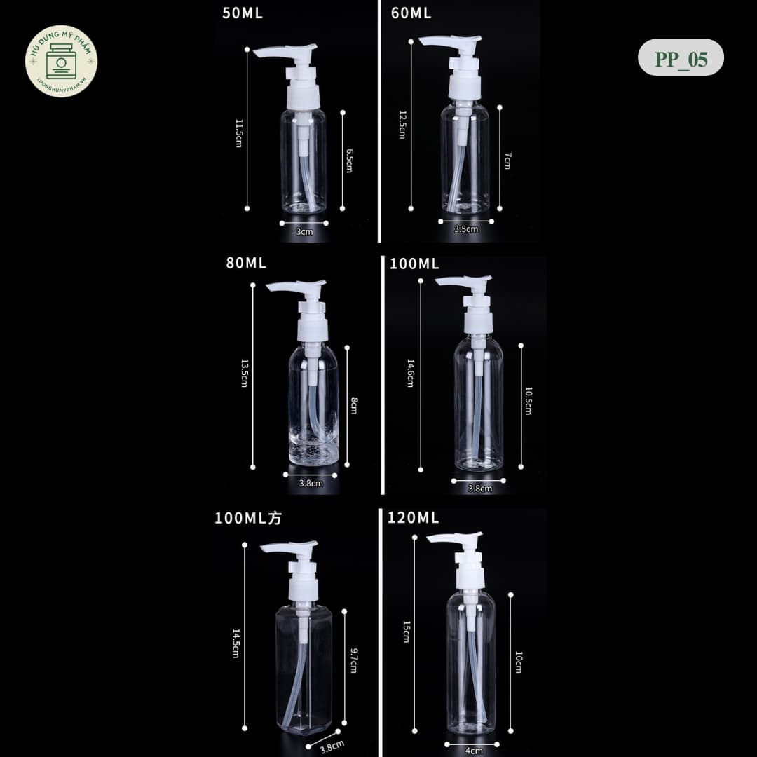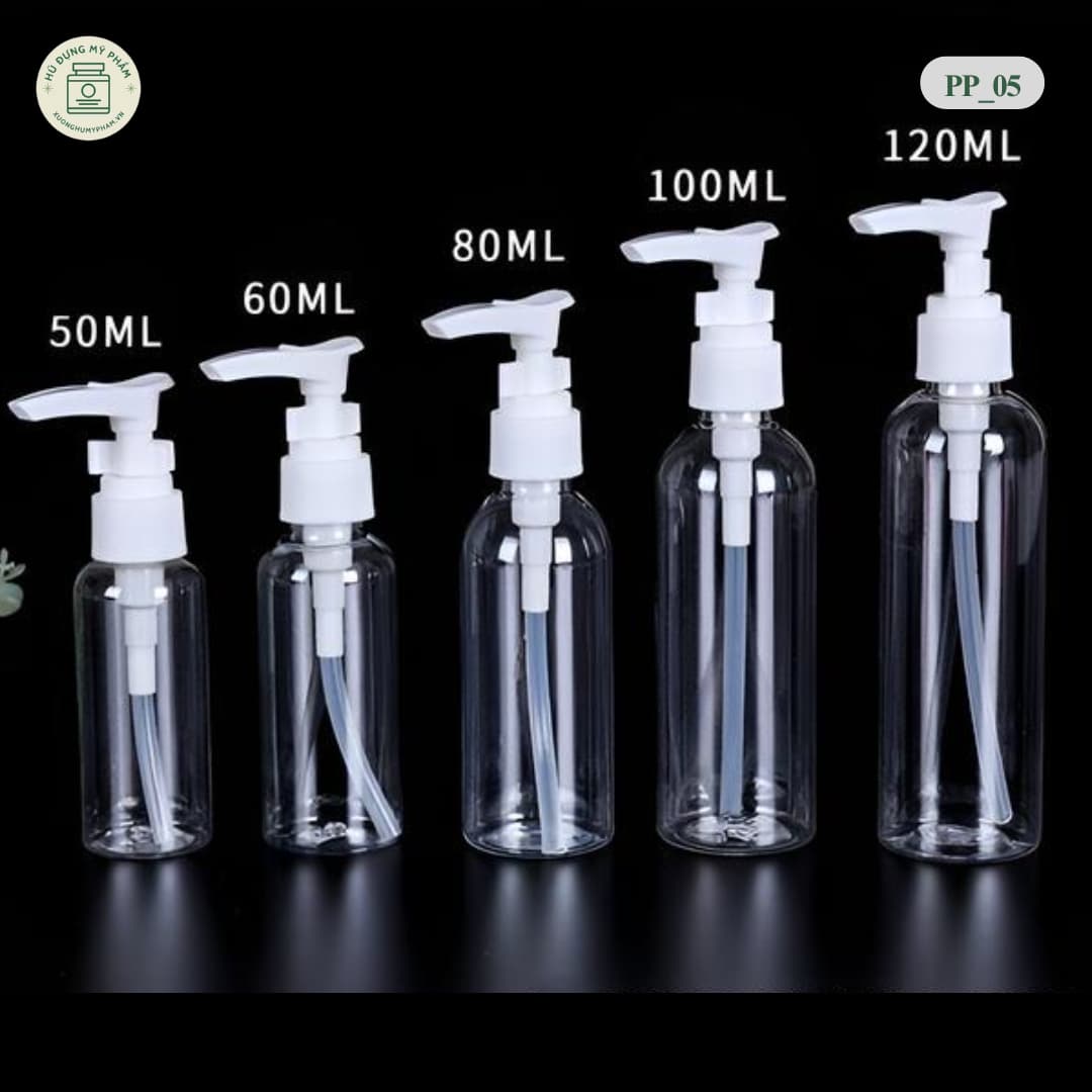Lọ chiết mỹ phẩm nhựa PP trong suốt vòi nhấn mã PP_05 (50ml – 120ml)
