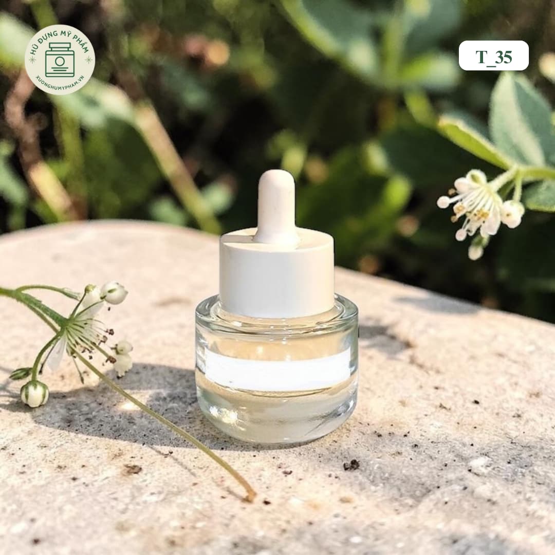 Chai tinh chất Serum dropper thủy tinh mã T_35 với thiết kế hiện đại, kết hợp đáy tròn dày tạo cảm giác chắc tay và cao cấp ngay từ lần chạm đầu tiên. Kiểu dáng tối giản nhưng tinh tế giúp sản phẩm nổi bật khi trưng bày và dễ dàng xây dựng hình ảnh thương hiệu. Phù hợp cho serum hoặc dược mỹ phẩm. Xưởng hỗ trợ in logo, gia công bao bì và cung cấp giá sỉ tận gốc